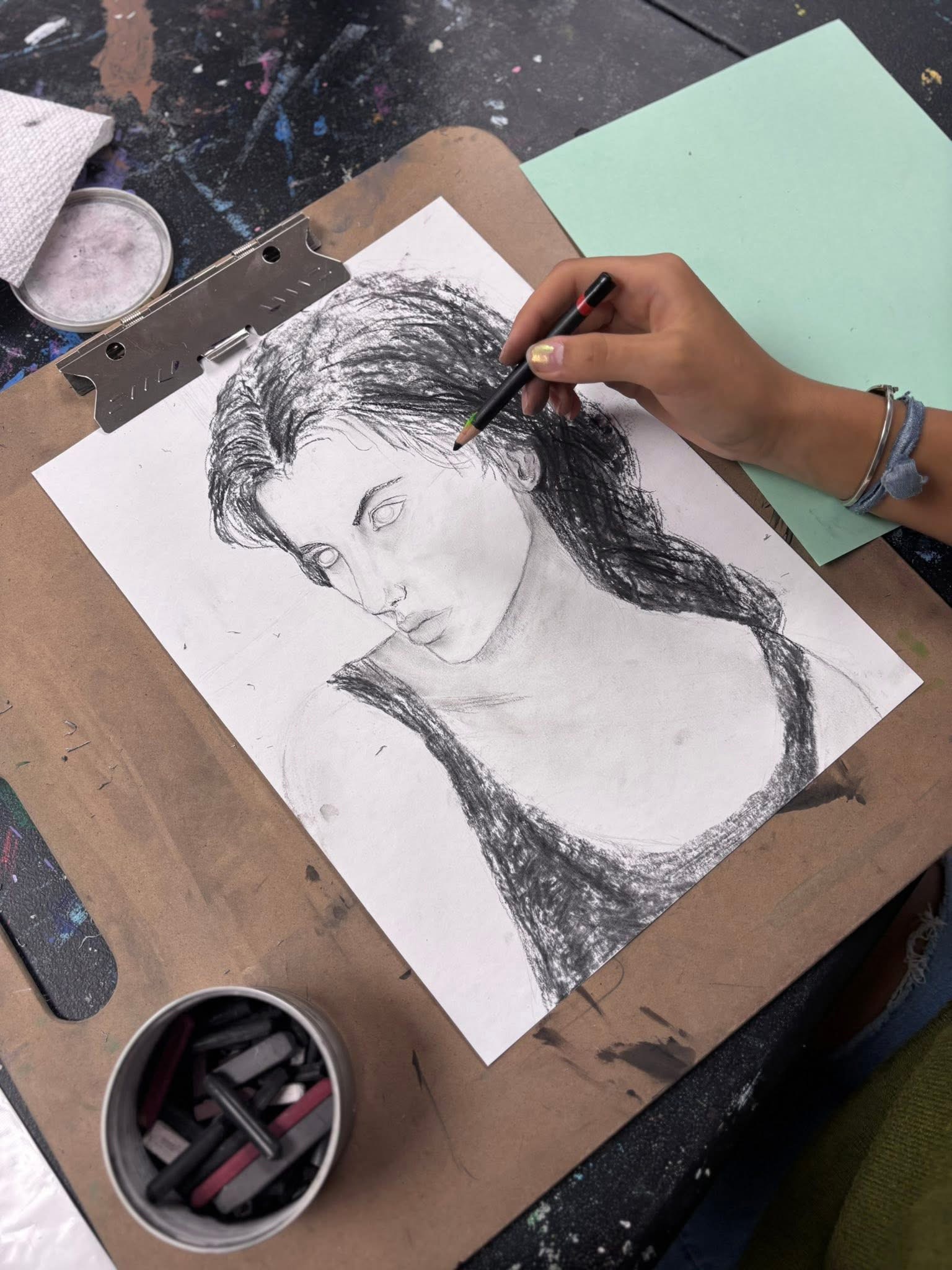 Charcoal is one of the most dynamic and versatile drawing mediums. It allows artists to explore deep contrast, rich textures, bold shading, and soft transitions with remarkable freedom. In our classes, students learn how to use charcoal to bring their ideas to life with emotion, depth, and strong visual impact